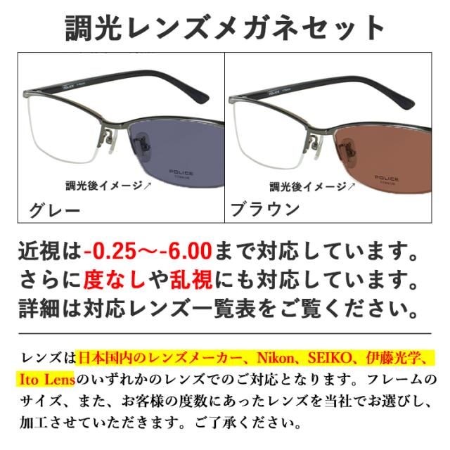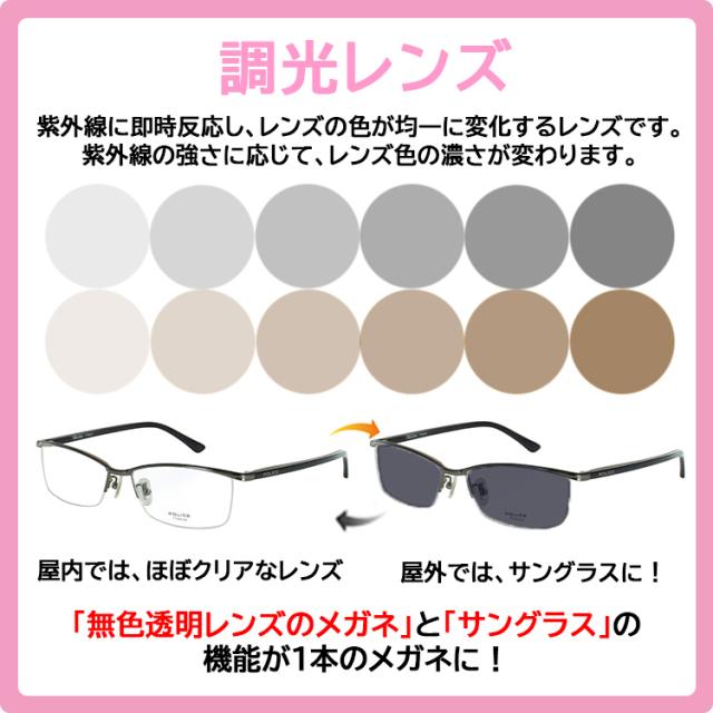 度付き 度なし 調光サングラス メンズ ポリス POLICE ブランド ナイロール ブローモデル チタンフレーム VPLN69J 0530 0568 0579 0S11 度あり 近視 近眼 乱視 度なし だて 伊達 クリア グレー調光 ブラウン調光 レンズの色が変わる おしゃれ かっこいい UVカット