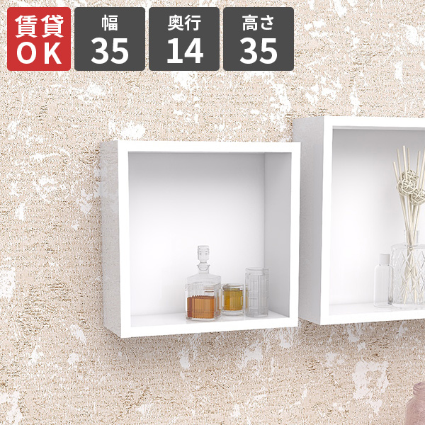 ウォールラック 壁掛けラック 壁面ラック 正方形 ホワイト おすすめ 壁掛け お部屋 壁面収納 収納ラック ディスプレイ シェルフ 石膏ボード キッチン 賃貸 ワードローブ 棚板 飾り棚 収納 壁付け ボックス 部屋 おしゃれ 収納棚 取り付け 日本製 幅35cm 奥行14cm 高さ35cm ★
