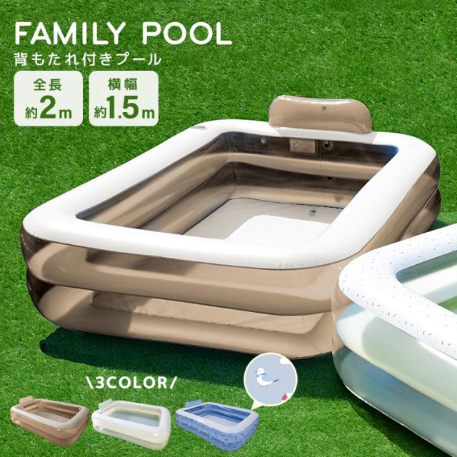 ビニールプール プール 大型 200×150 おしゃれ リペアシール2枚付属 背もたれ付き 家庭用 ファミリープール 水遊び 夏休み 暑さ対策 自宅 保育園 幼稚園 送料無料