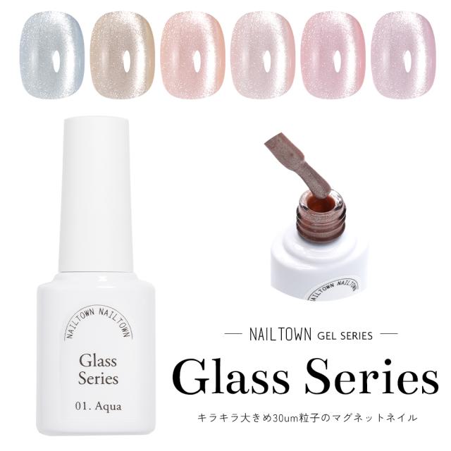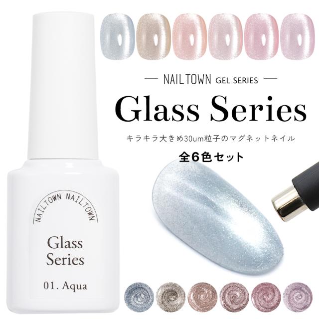 マグネットネイル ネイルタウンジェル ポリッシュタイプ グラスシリーズ 黒くなりにくい 全6色セット 各約5ml