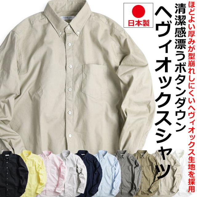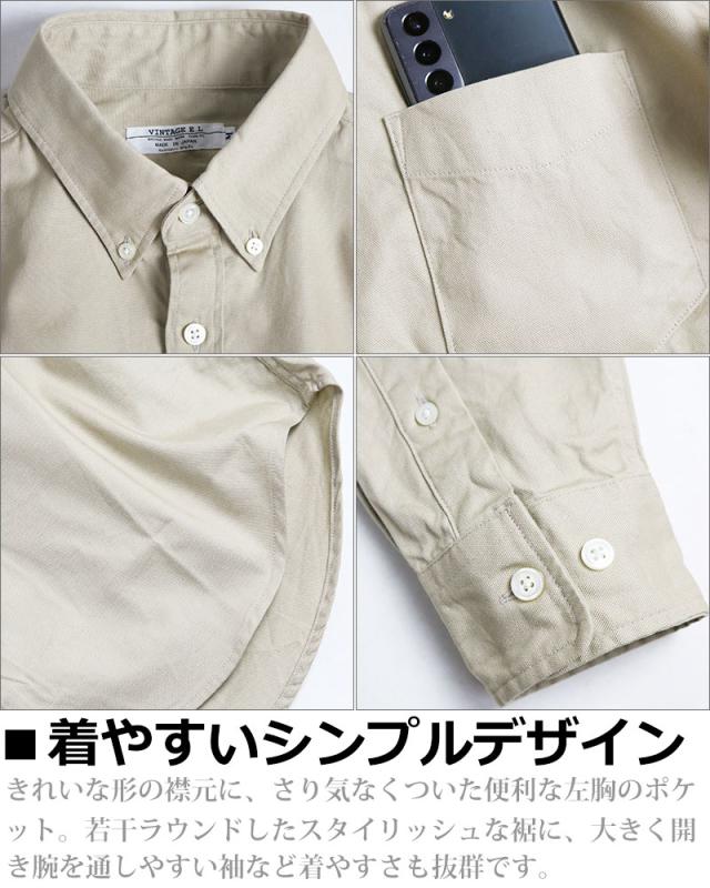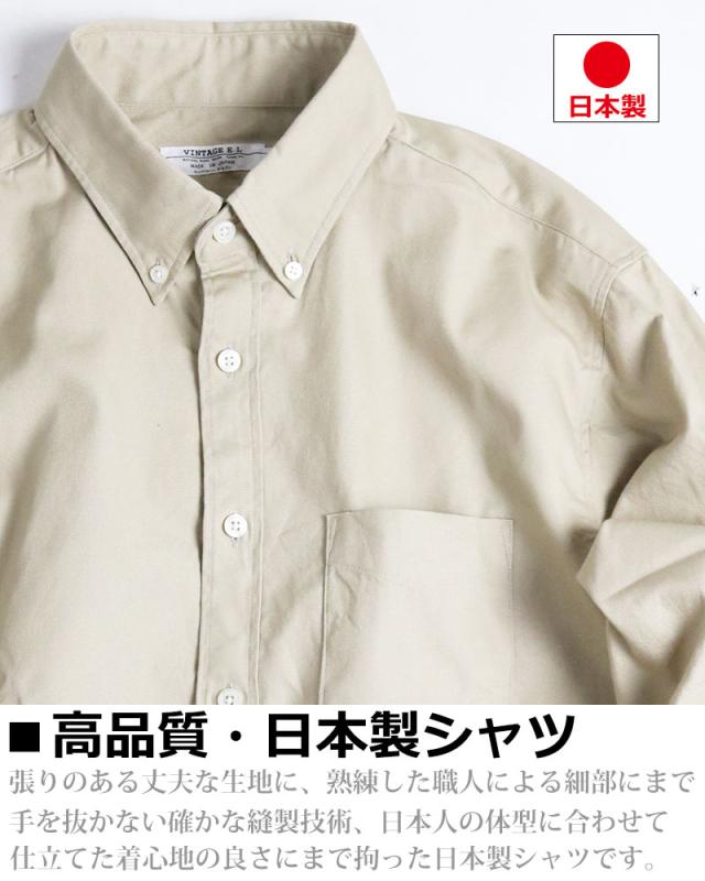 日本製 VINTAGE EL オックスフォードシャツ メンズ 無地 長袖シャツ オックスシャツ 厚手 ヘビーウエイト ボタンダウンシャツ