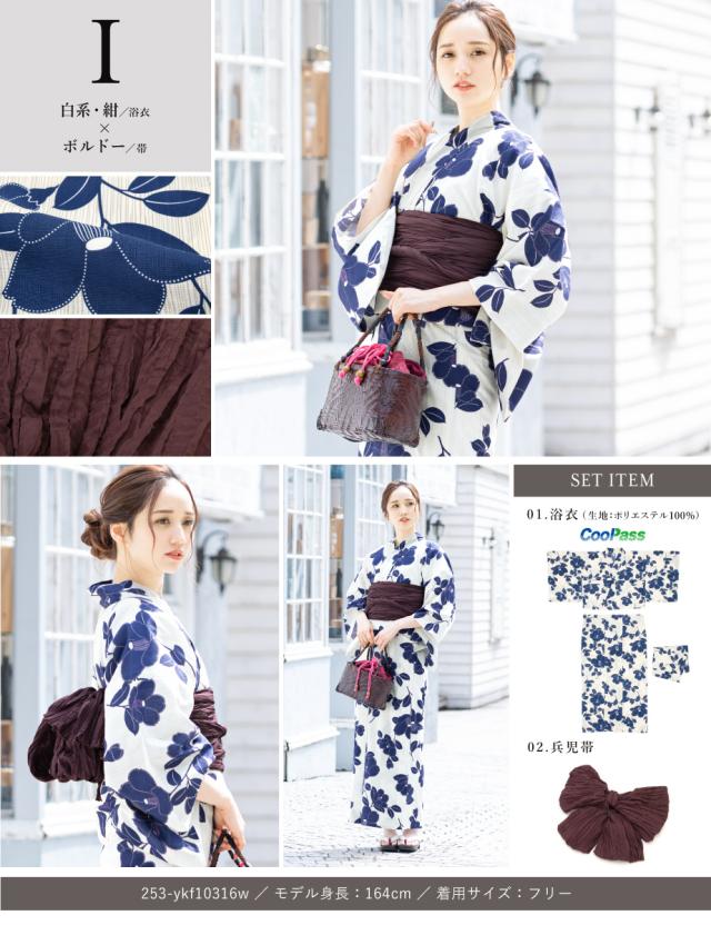 簡単着付け セパレート浴衣 レディース セット 3点セット 2026 浴衣 帯 伊達締め 浴衣セット 女性 二部式浴衣 白 黒 ネイビー ブルー くすみ 花柄 着付け 簡単 フリー 140 150 160 女の子 創美苑 送料無料