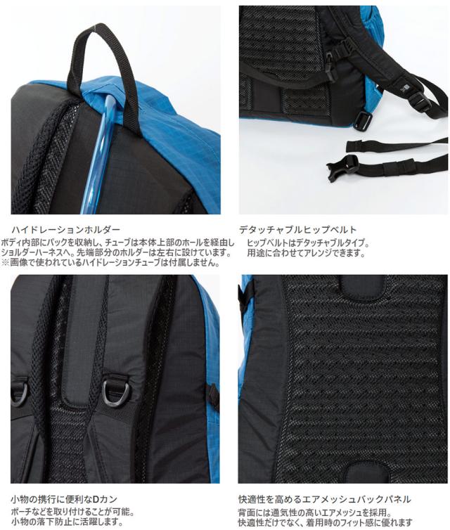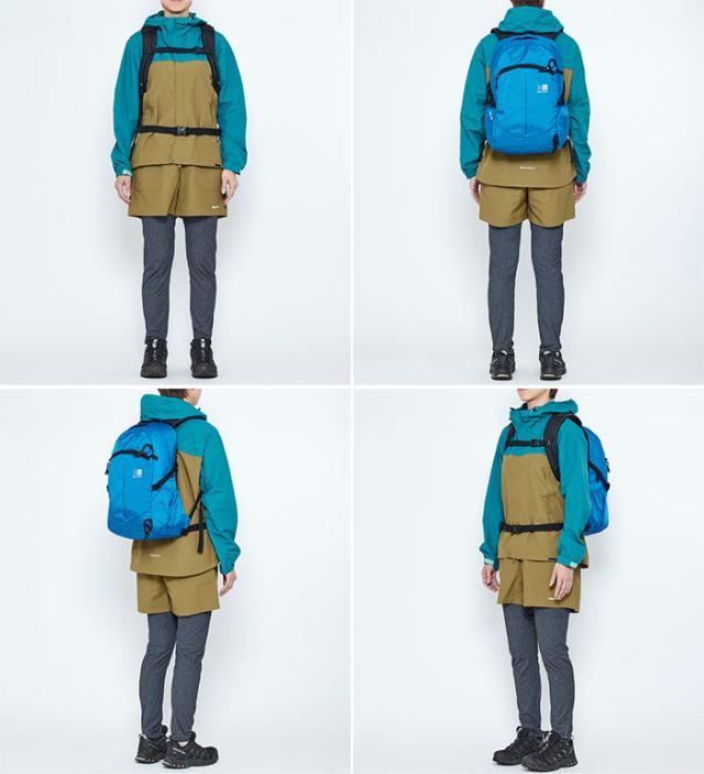 シンプルなデザインながらもポールキャリアやチェストストラップなど豊富な装備でデイハイクから日常使いまで幅広く対応。