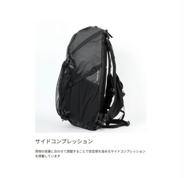 ユーティリティショルダーハーネスなど豊富な機能を装備させ「行動しながらの快適な操作性」「荷物の出し入れ・撤収のしやすさ」「軽さ」を合わせもち、高い機動性と多機能を備えるワンデイハイクモデル。