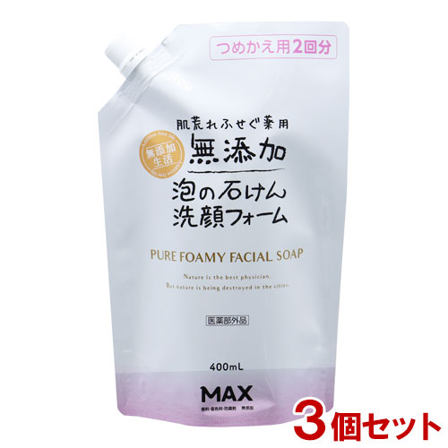 肌荒れふせぐ 薬用無添加 泡の石けん洗顔フォーム 詰替用 400ml×3個セット つめかえ用2回分 マックス石鹸(MAX)【送料込(北海道除く)】