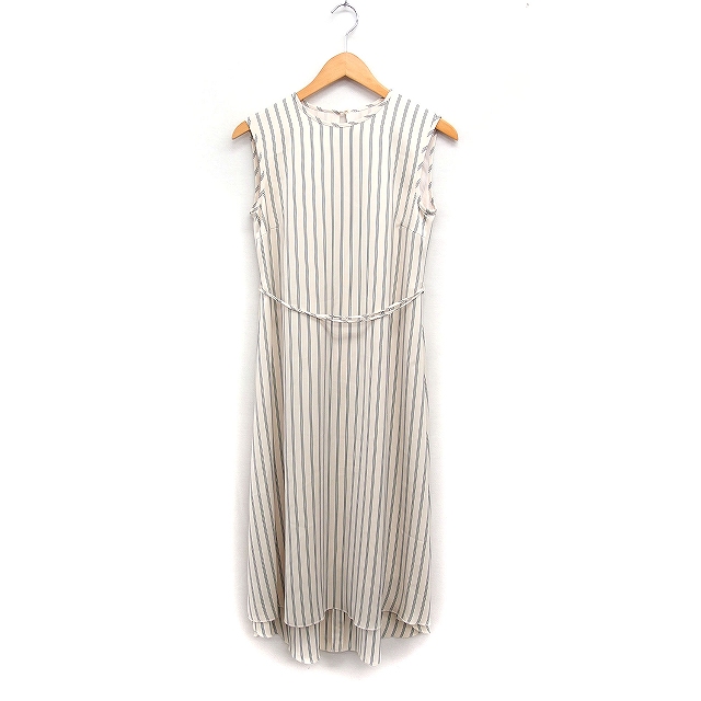 【中古】ミラオーウェン Mila Owen ストライプ フレアワンピース ロング丈 ノースリーブ リボン 0 アイボリー /FT35