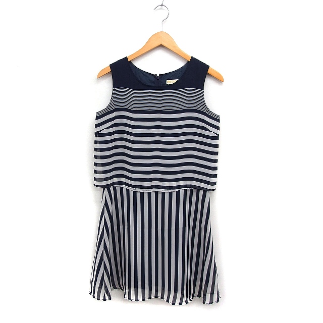 【中古】ビームスハート BEAMS HEART ストライプ ワンピース ノースリーブ ひざ丈 フレア シフォン 1 ネイビー 紺