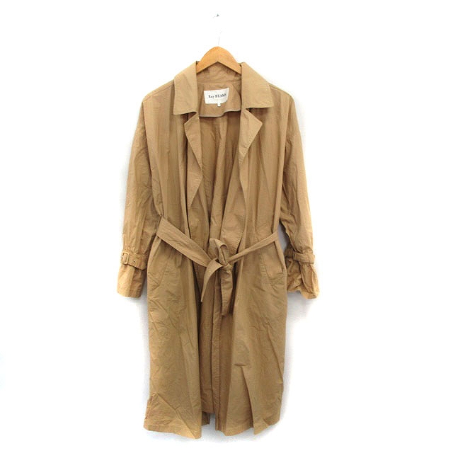 【中古】レイビームス Ray Beams トレンチコート ロング リボン コットン シンプル 0 ベージュ /KT10 レディース