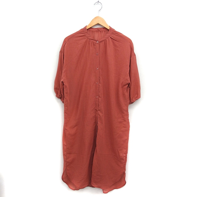 【中古】レイカズン Ray cassin シアー シャツワンピース ロング丈 5分袖 ストレートライン 無地 F テラコッタ /FT26