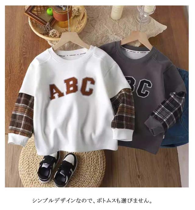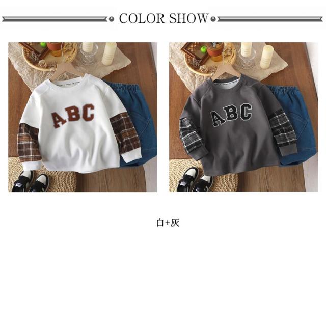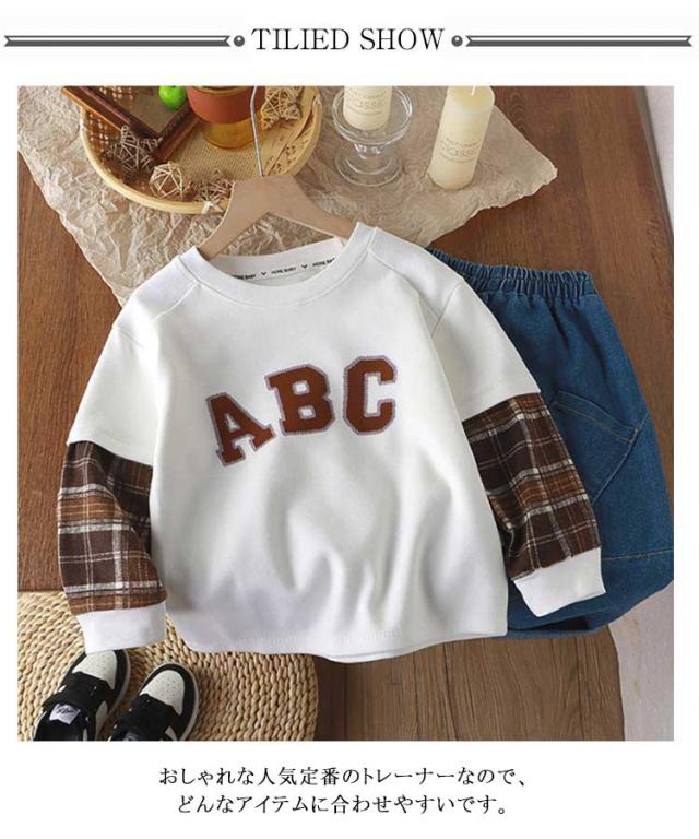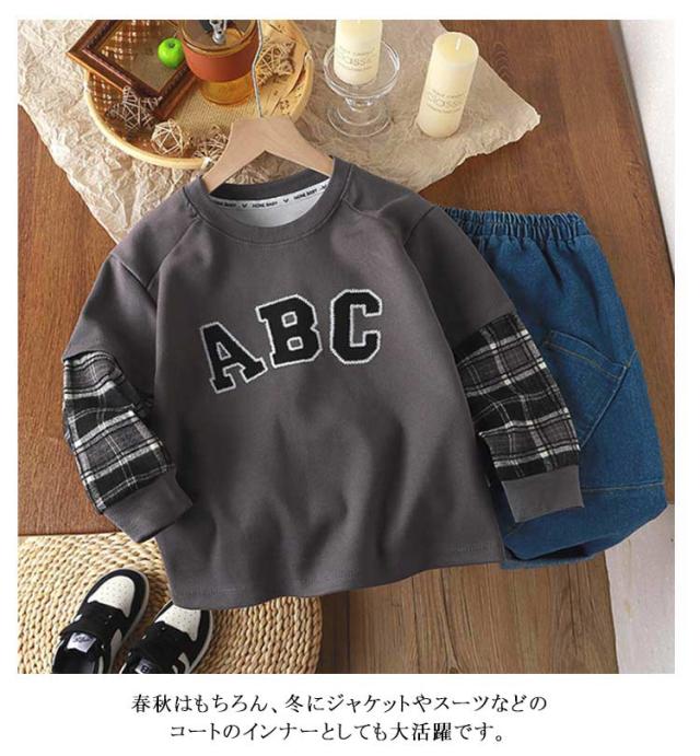 トレーナー 男の子 春 袖配色 チェック柄 キッズ ベビー 子供 子供服 キッズ服 2枚セット トップス スウェットシャツ スエット プルオーバー キッズトレーナー 保育園 微起毛 配色切替 ジュニア 通園着 通学着 秋冬 秋服 秋物 送料無料