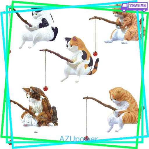 釣り猫 子猫釣り置物 猫釣り像 フィギュア 懸垂装飾品 猫モデル レジャー猫 猫釣り魚の水槽造景 水族館 雑貨装飾 庭の装飾 雰囲気を作る デコレーション 5点セット