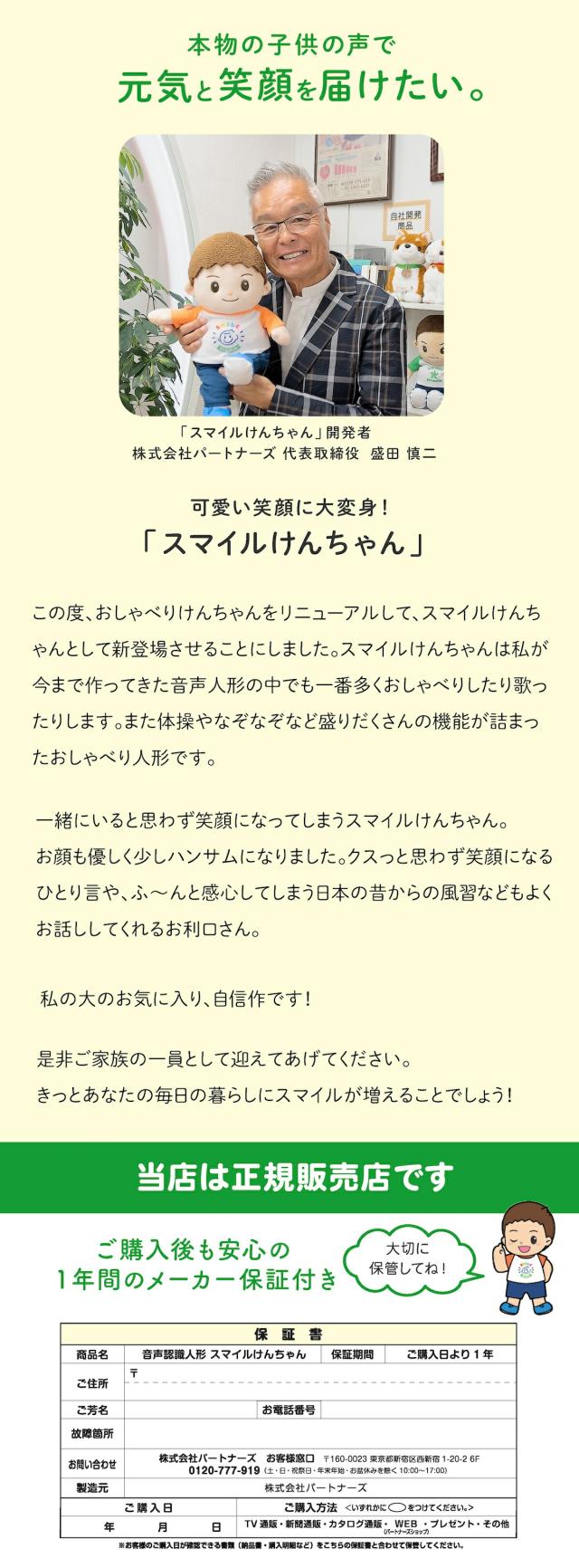 | 商品名 | 音声認識人形 スマイルけんちゃん |