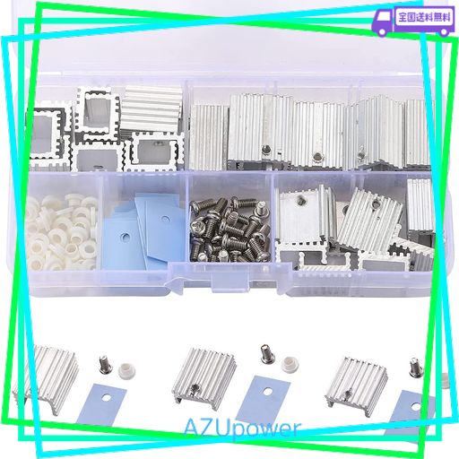 PENGLIN TO-220ヒートシンク 30セット 放熱シート 絶縁粒子 M3ネジ アルミニウム 冷却フィン 熱伝導シート 放熱器 クーラー冷却用トランジスタ 収納ケース付き
