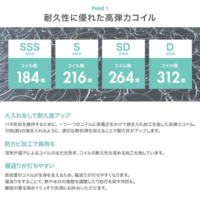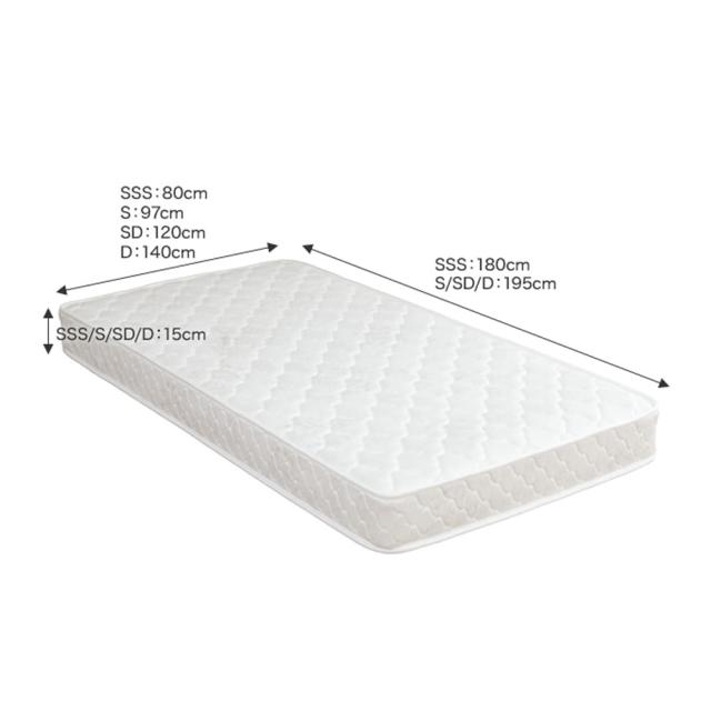 マットレスは厚さ15cmのボンネルコイルタイプ。