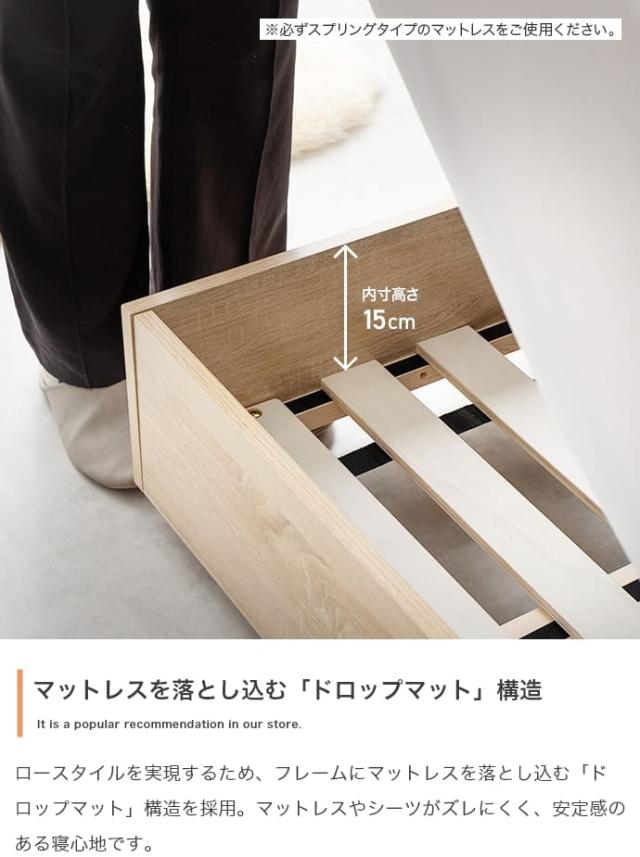 このローベッドは、マットレスをフレーム内にすっきり収める「ドロップマット構造」で安定感バツグン。