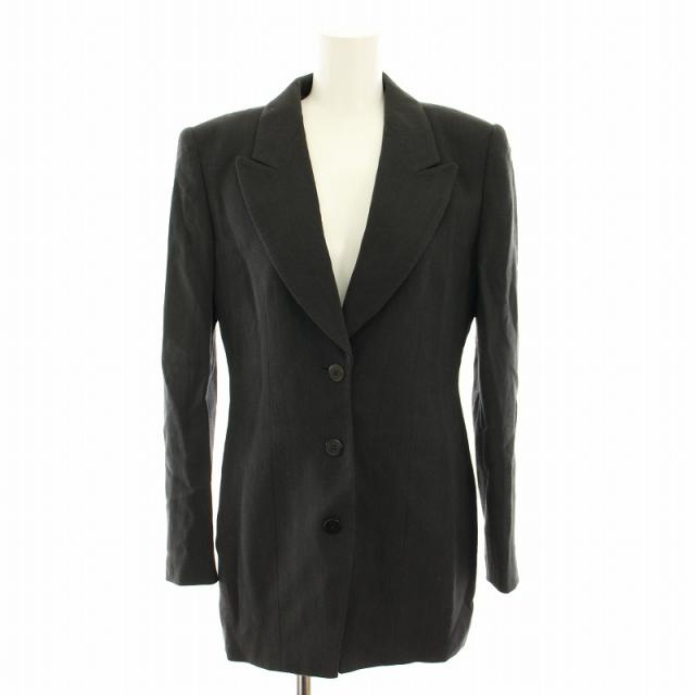 【中古】ジョルジオアルマーニ テーラードジャケット シングル ヴィンテージ 絹 40 チャコールグレー レディース