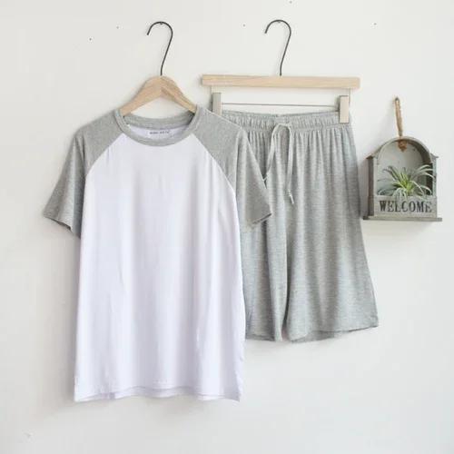 メンズ薄手のパジャマ ルーズフィット 半袖 ショート スポーツウェア 外部着用可能 ホームウェア ファッショナブル