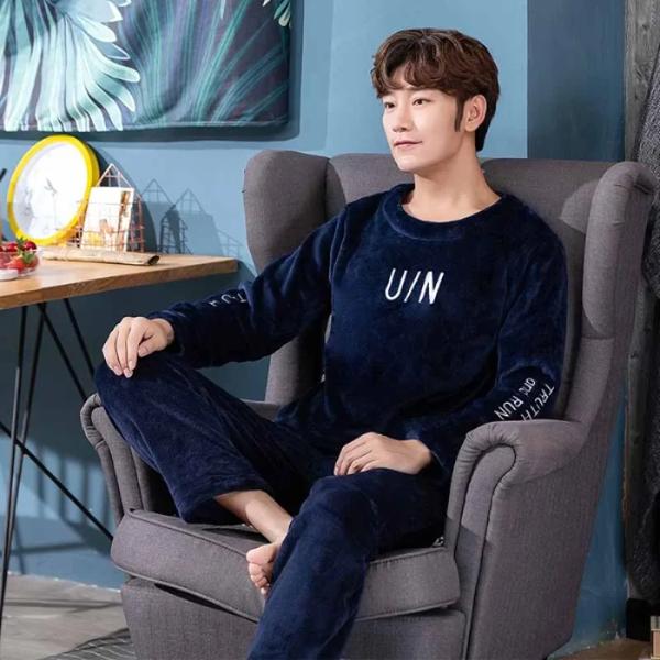 冬の新肥厚ラウンドネック長袖 2 ピース衣装セット男フランネル男服セット高度な印刷ラウンジセット男