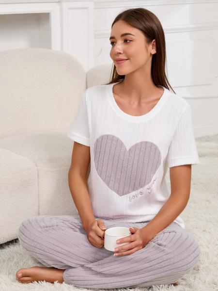 女性の スタイルのパジャマセットハート柄半袖シャツパンツツーピースシンプルで素敵なカジュアルホームウェア