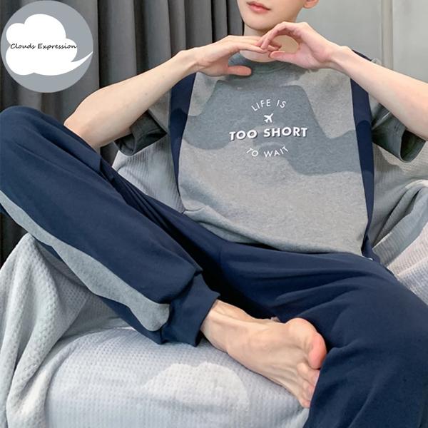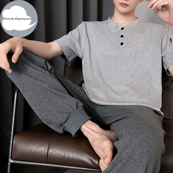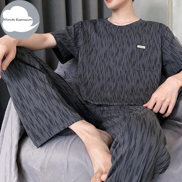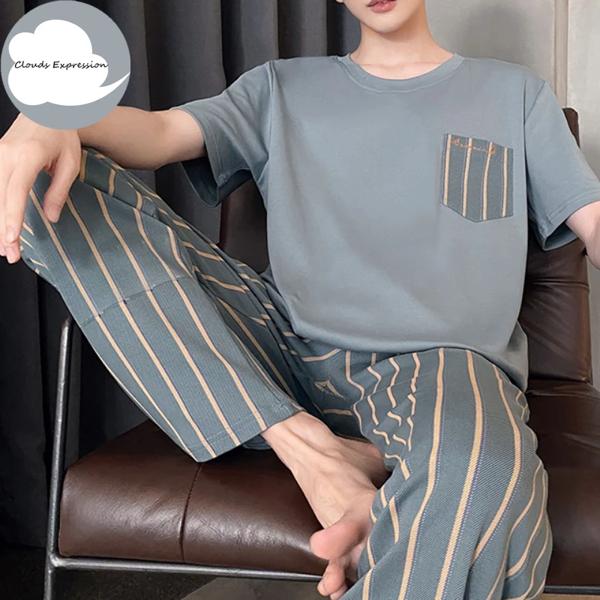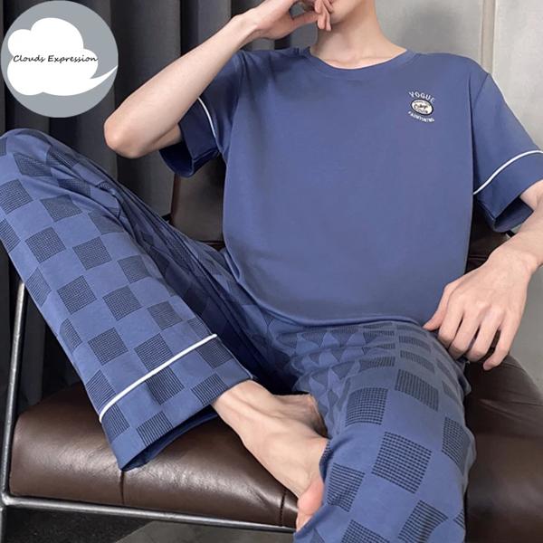 夏ニットチェック柄クールメンズパジャマパジャマカジュアルショートトップス + 長ズボンセット男性のパジャマナイトウェア Pijamas 4XL Homewea