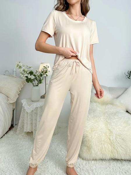 女性の スタイルのパジャマ半袖パンツエレガントカジュアルツーピース無地ホームウェア