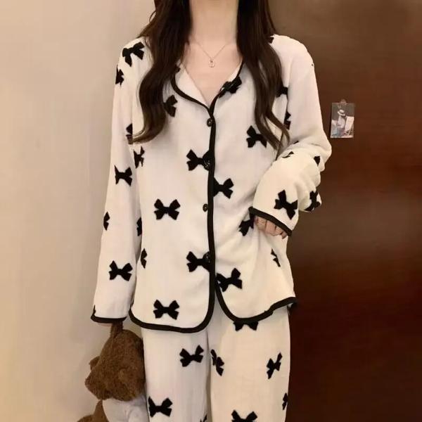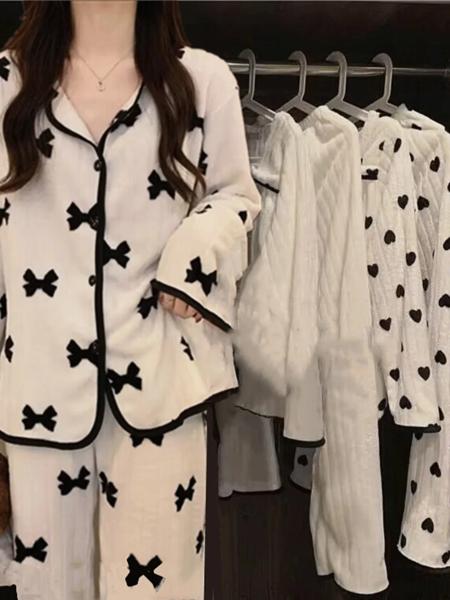 女性のコーラルフリースパジャマカーディガン長袖長ズボンホーム服セット厚い甘いスタイル秋冬新着