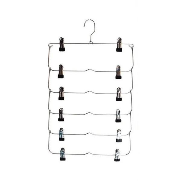 6 層洋服ハンガー多層スカートズボンハンガーパンツ用ノンスリップ金属ハンガークリップ衣類収納ラックホルダー