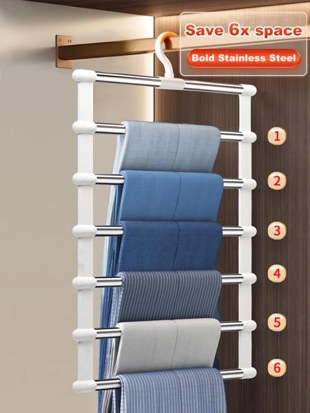 パンツハンガー省スペース6/8層ステンレス鋼ズボンハンガークローゼットオーガナイザーパンツジーンズスカートスカーフレギンス用