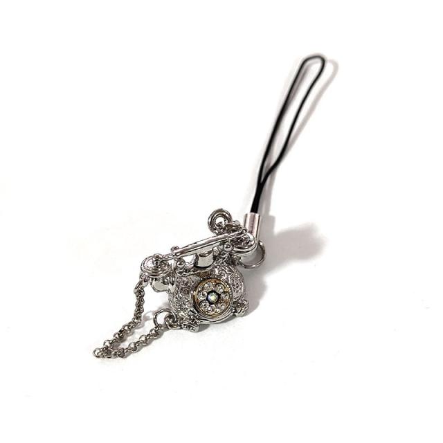 ストラップ おしゃれ テレフォン ミニチュア 電話機 シルバー かわいい キーホルダー アンティーク レディース メンズ