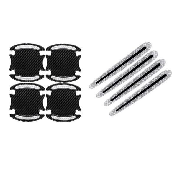 8 個 3D 車の反射ステッカー炭素繊維デカールドアハンドルボウル保護警告ストリップステッカー車の外装アクセサリー