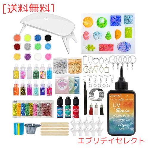 UNOKKI レジン セット, UVレジン スターターキット セット 初心者,レジン 着色剤,レジン液,レジン型,uvライト レジン用,必要な道具やパー
