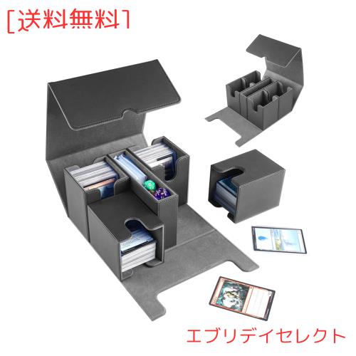 HG CHASING TRIBE デッキケース トレカケース 2024新発売の5in1分離構造 PU レザー カード880+枚収納 大容量 スリーブ対応 サイコロ付きケース トレーディングカードケース (黒、グレー, 5in1/880+枚のカード収納セット)