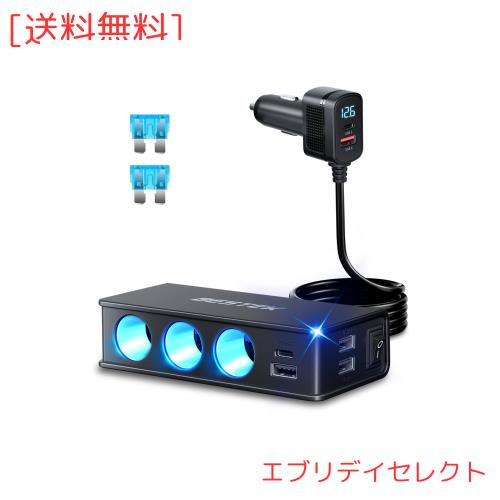 ◆商品名:BESTEK シガーソケット 3連 USB 車載充電器 QC3.0・PD30W 急速充電対応 電圧・電流表示機能搭載 12V/24V車用 A-BTTR49-BK