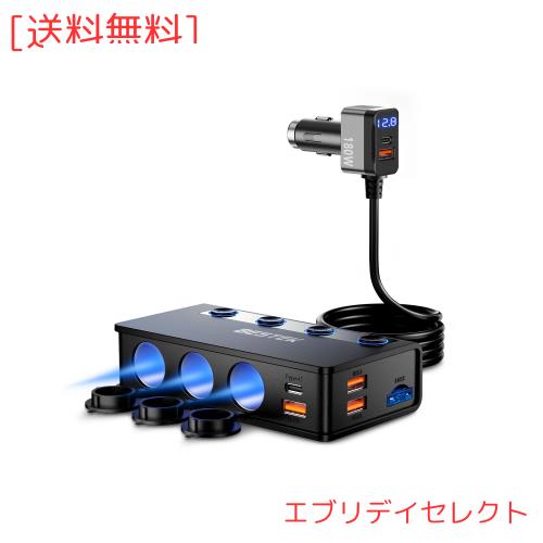 BESTEK シガーソケット 180W 3連 車 USB 増設 カーチャージャ 車載充電器 シガーライターソケット 3ポート PD36W/65W・QC3.0 18W*4充電ポ