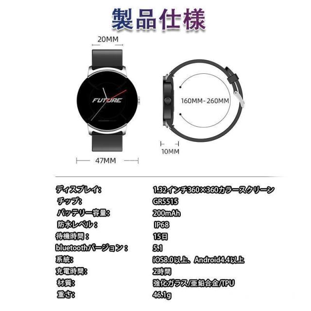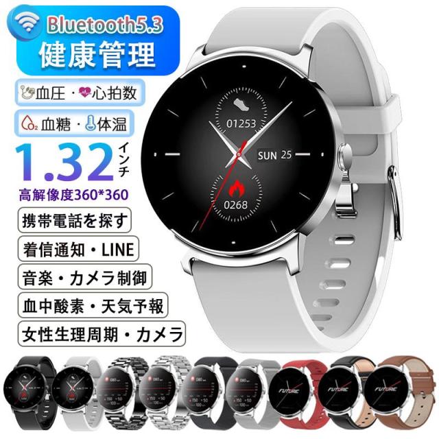 スマートウォッチ 血圧測定 血中酸素 心拍数 着信通知 女性生理健康管理 睡眠検測 体温測定 腕上げ点灯 歩数計 音楽再生 カメラ制御 IP68防水 天気予報 父の日