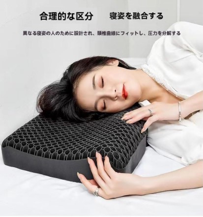 【首が痛くならない】ストレートネック枕:高品質のTPE素材を使用したジェルピロー。首や肩の負担を軽減し、正しい姿勢を保ちます。まるで自然に頭を支えるような快適な寝具です