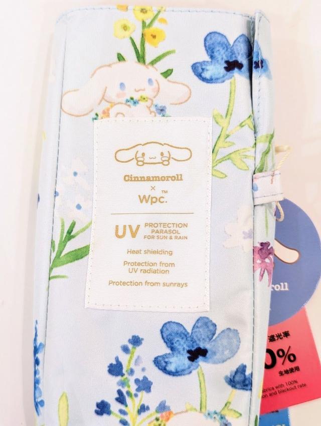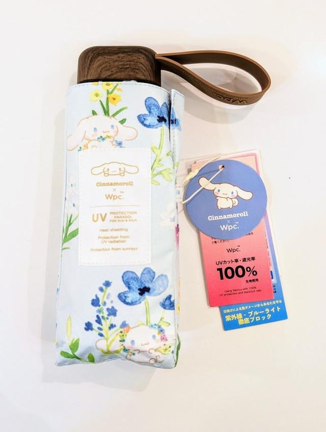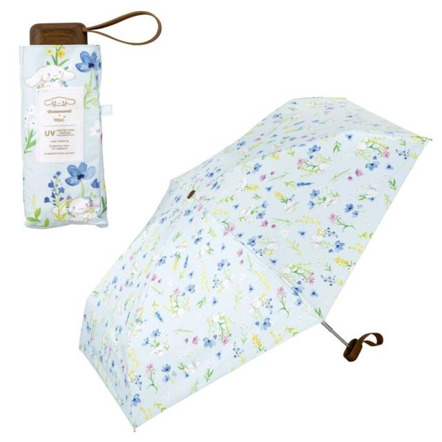 Wpc. サンリオキャラクターズ サックス シナモロール 遮光 水彩フラワー ミニ 日傘 折りたたみ コンパクト 晴雨兼用 100%カット