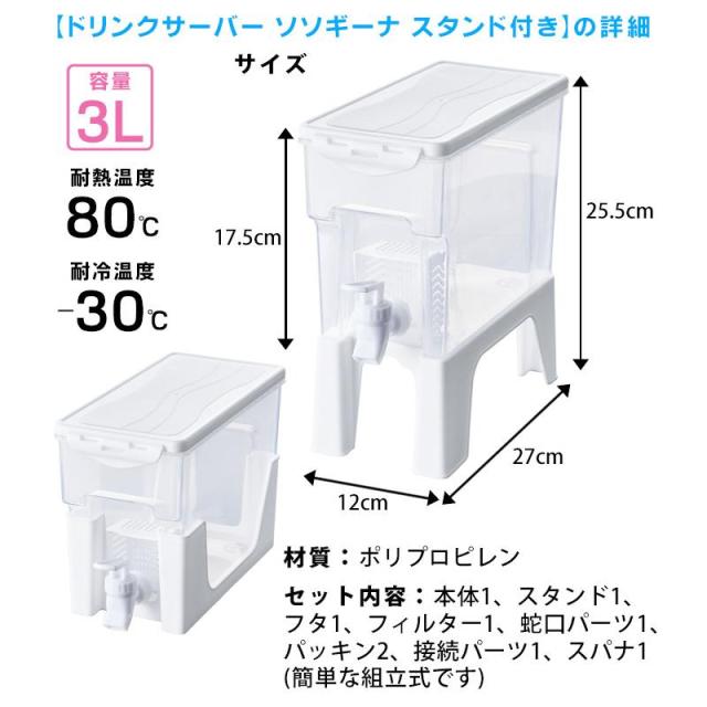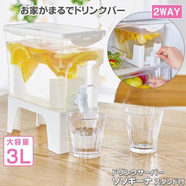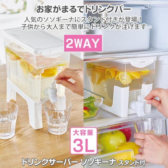 ドリンクサーバー ソソギーナ 3L スタンド付 蛇口付 冷蔵庫 家庭用 麦茶 ポット 茶 水 洗いやすい ウォーター ピッチャー ジャグ 冷水筒 ドリンクディスペンサー