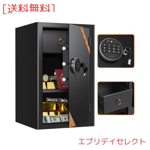 WASJOYE 金庫 テンキー式 大型セキュリティーボックス 引き出し内蔵 家庭用 店舗用 業務用 会社用 ホテル用 防犯盗難防止金庫 180°ドア