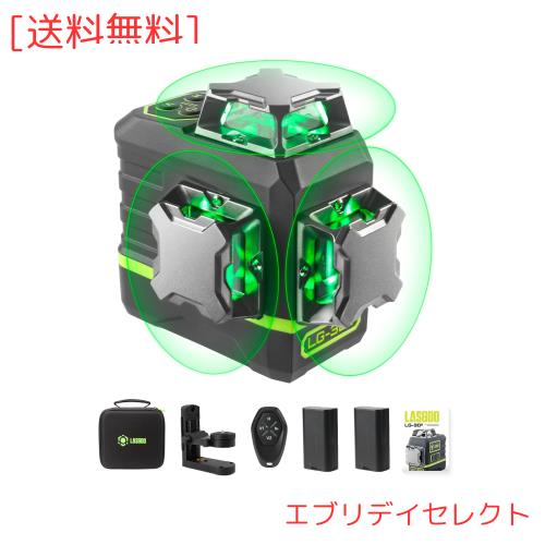 LasGoo レーザーレベル セルフレベリング 360°x3 グリーンクロスライン レーザーツール 工事や絵画の吊り下げに、リモコン付き、プロフ