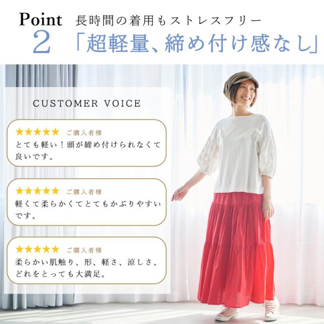 通気性のよい素材でかぶっているのを忘れるくらいのリラックス感。