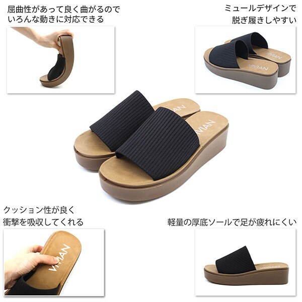 ヴィヴィアン(Vivian)/【25春夏新作】サッ!と履ける厚底コンフォートニットサンダル