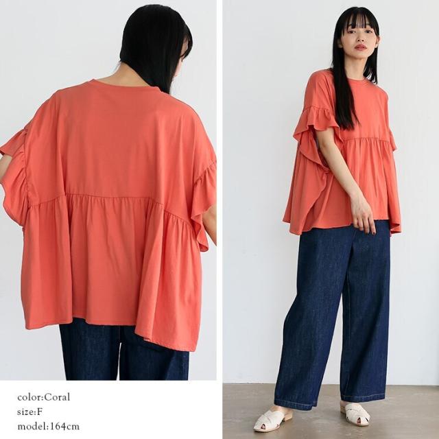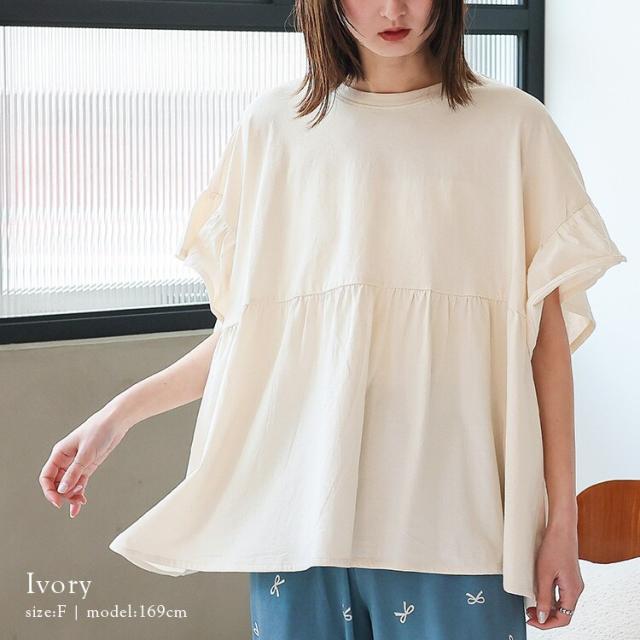フリル袖ペプラムトップス