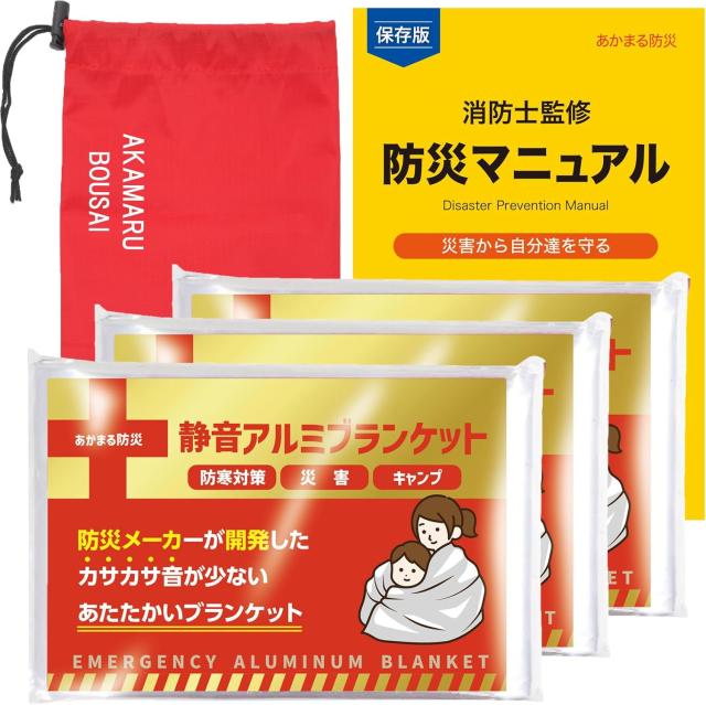 アルミシート アルミブランケット サバイバルシート カサカサ音が少ない 静音 あかまる防災 3個