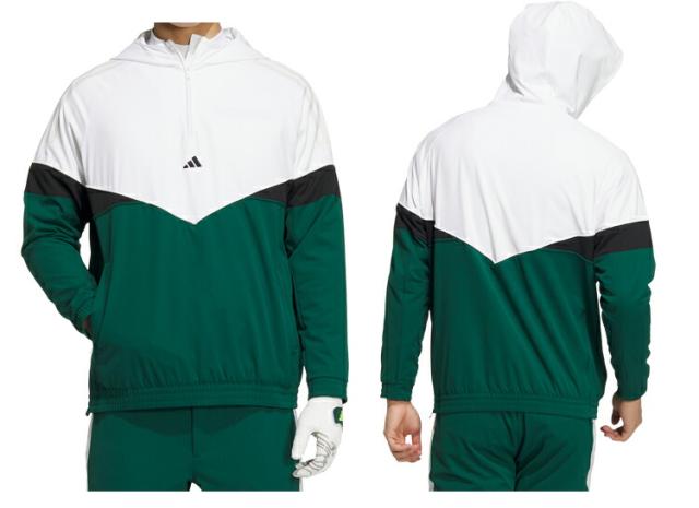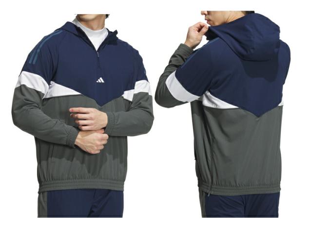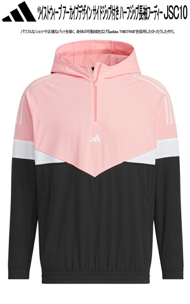 アディダスゴルフ ツイストウィーブ アーカイブデザイン サイドジップ付き ハーフジップ長袖フーディー メンズ ゴルフ ウェア 「ADIDAS GOLF JSC10」 2024年秋冬モデル