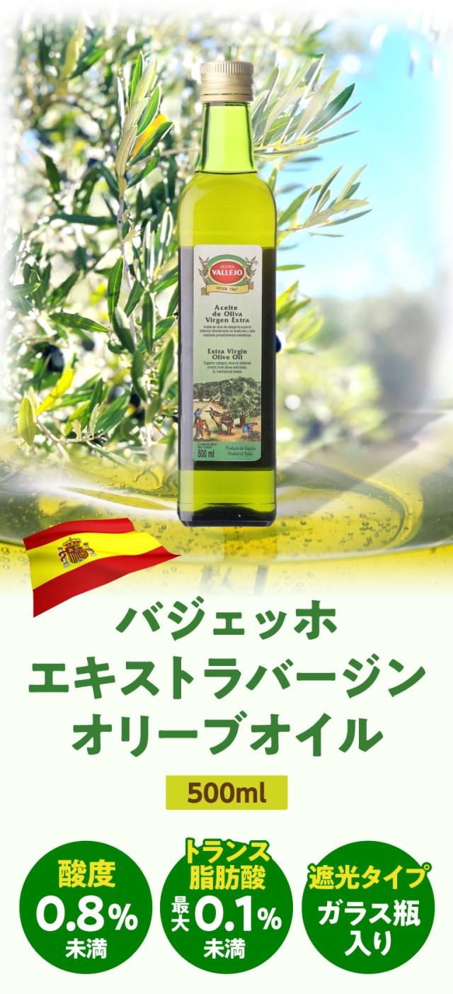 スペイン産 オリーブオイル エキストラバージン 500ml×3本 EX EXVオリーブオイル ガラス瓶 バジェッホ 長S