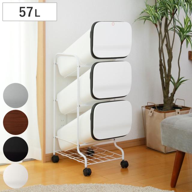 ゴミ箱 3段 Nスムース スタンドダストボックス ( ごみ箱 19L×3 ふた付き ダストボックス 分別ごみ箱 キャスター付き 縦型 20リットル 3個 フタ付 前開き キッチン スリム ゴミ箱 分別 キッチン ゴミ箱)
