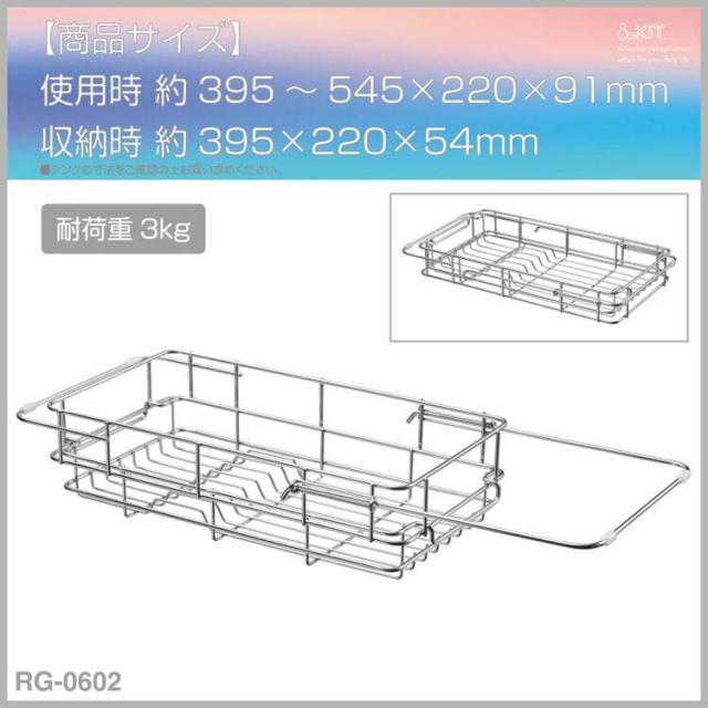 | 商品サイズ(使用時):約395〜545×220×91mm 商品サイズ(収納時):約395×220×54mm 重量:約720g 耐荷重:3Kg 材質:本体:ステンレス鋼、ゴム足:シリコーンゴム |