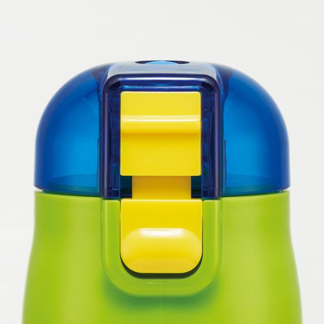 水筒の蓋はボタンを押すだけで開けることができるワンタッチ式です。飲み終わったら蓋をカチッと閉めるだけなので、小さなお子様でも簡単に開閉できます。