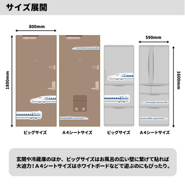 JR東海の車両デコレーションマグネット【ビッグサイズ】が登場!「Advanced」のAを冠するN700typeA新幹線を玄関や冷蔵庫、洗濯機などに貼って遊んだり、おふろでも使えます!(※) ■お届け時商品サイズ:約370×540mm(1枚) ※マグネットタイプのため、あらかじめご利用いただく場所にマグネットがつくかご確認ください。 |
